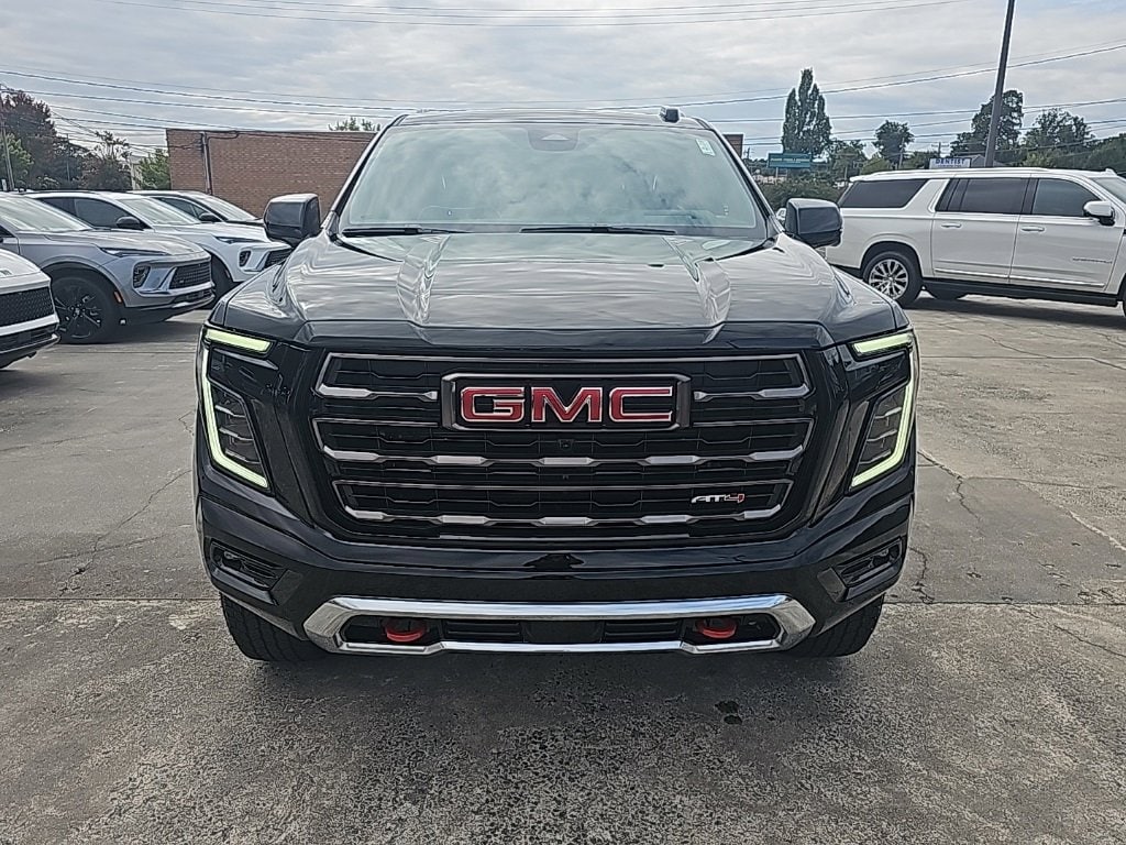 Equipped with Advanced Security Package (Glass Breakage Sensor, Theft-Deterrent Alarm System, Vehicle Inclination Sensor, and Vehicle Interior Movement Sensor), Advanced Technology Package (3 Years of OnStar Digital Services/Safety Services, Driver Attention Assist, Inside Rearview Auto-Dimming Rear Camera Mirror, Rear Seat Media System, and Super Cruise), Enhanced Trailering Technology Package (Trailer Camera Provisions, Trailering Assist Guidelines, and Wired Auxiliary Trailer Camera (LPO)), Max Trailering Package (Blind Zone Steering Assist w/Trailering, Extra Capacity Cooling System, Hitch View, Integrated Trailer Brake Controller, and Smart Trailer Integration Indicator), Preferred Equipment Group 4SG (15 Diagonal Multi-Color Head-Up Display, 4-Spoke Leather-Wrapped Steering Wheel, 4-Way Power Driver Lumbar Seat Adjuster, 4-Way Power Front Passenger Lumbar Seat Adjuster, 8 Diagonal Rear Touchscreen Climate Control, AutoSense Hands-Free Power Liftgate, Black Roof-Mounted Luggage Rack Side Rails, Body-Color Door Handles, Bose 18-Speaker Surround w/CenterPoint, Bright Front & Rear Door Sill Plates, Driver 2-Way Power Upper Shoulder, Driver Power Massage Seat, Dual Exhaust System, Dual-Pane Panoramic Power Sunroof, Front High-Approach Angle Fascia, Front Passenger 2-Way Power Upper Shoulder, Front Passenger Power Massage Seat, Heavy-Duty Air Filter, Hill Descent Control, Perforated Heated & Ventilated Dr & Frt Pass Seats, Power Release 2nd Row Bucket Seats, Power Tilt & Telescopic Steering Column, Power-Retractable Assist Steps, Red Horizontal-Mounted Recovery Hooks, Sport Pedal Cover Kit (LPO), and Wheel Locks (Set of 4) (LPO)), Premium Capability Package w/Active Response 4WD (Air Ride Adaptive Suspension and Electronic Limited Slip Differential (eLSD)), 18 Speakers, 3 Years SiriusXM, 3.23 Rear Axle Ratio, 3rd row seats: split-bench, 4-Wheel Disc Brakes, ABS brakes, Adaptive suspension, Air Conditioning, Alloy wheels, AM/FM radio: SiriusXM with 360L, Apple CarPlay/Android Auto, Audio memory, Auto High-beam Headlights, Auto-dimming door mirrors, Auto-dimming Rear-View mirror, Auto-leveling suspension, Automatic temperature control, Brake assist, Bumpers: body-color, Compass, Delay-off headlights, Driver door bin, Driver vanity mirror, Dual front impact airbags, Dual front side impact airbags, Electronic Stability Control, Emergency communication system: OnStar and GMC connected services capable, Exterior Parking Camera Rear, Four wheel independent suspension, Front anti-roll bar, Front Bucket Seats, Front Center Armrest, Front dual zone A/C, Front fog lights, Front reading lights, Full Grain Leather Seats, Fully automatic headlights, Garage door transmitter, Headphones, Heads-Up Display, Heated door mirrors, Heated Driver & Front Passenger Seats, Heated front seats, Heated rear seats, Heated steering wheel, Illuminated entry, Leather steering wheel, Low tire pressure warning, Magnetic Ride Control Suspension, Memory seat, Navigation system: GMC Connected Navigation, Night Vision, Occupant sensing airbag, Outside temperature display, Overhead airbag, Overhead console, Panic alarm, Passenger door bin, Passenger vanity mirror, Power door mirrors, Power driver seat, Power Liftgate, Power moonroof, Power passenger seat, Power steering, Power windows, Radio: 16.8 Diagonal Premium GMC Infotainment Sys, Rain sensing wipers, Rear air conditioning, Rear anti-roll bar, Rear audio controls, Rear reading lights, Rear window defroster, Rear window wiper, Remote keyless entry, Security system, SiriusXM w/360L, Speed control, Speed-sensing steering, Split folding rear seat, Spoiler, Steering wheel memory, Steering wheel mounted audio controls, Tachometer, Telesc Price includes:
